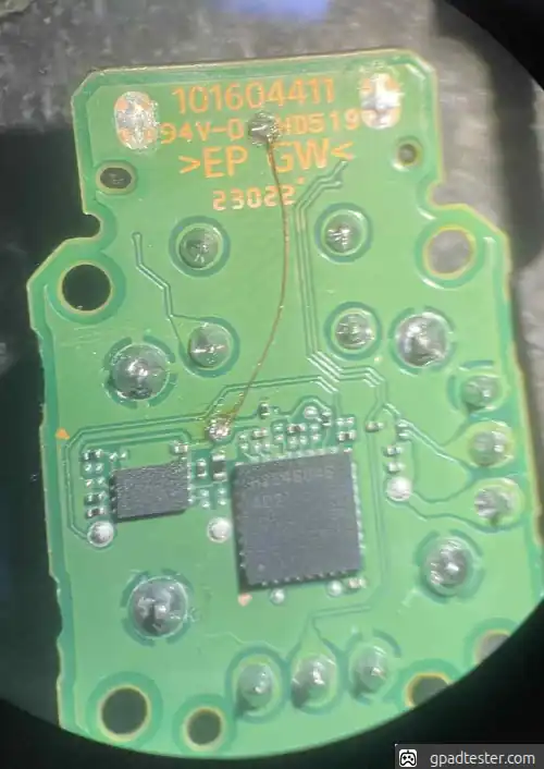 Calibrating the PS5 Edge requires adding a wire (PHOTO) that connects two points on the analog module. Supplying 1.8V to the top test point is necessary for the calibration process and for permanently saving the calibration data in the controller.